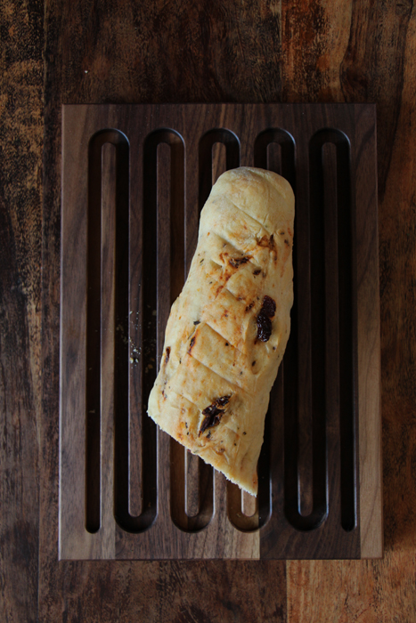 Sommerzeit ist Grillzeit – und als Beilage darf natürlich selbstgemachtes Baguette oder Focaccia nicht fehlen. Wichtig ist, dass ihr den Teig lang genug gehen lasst, damit er schön aufgeht und ein fluffiges Baguette dabei herauskommt. Der Teig lässt sich wunderbar mit Kräutern, Oliven oder getrockneten Tomaten verfeinern. Das Rezept für Tomaten-Baguette habe ich heute mal für euch aufgeschrieben, so als Inspiration für den nächsten Grillabend… Übrigens funktioniert der Teig auch als Stockbrot: einfach mit zum Lagerfeuer nehmen, einen dünnen Ast zurechtschnitzen und ein Stück Teig um den Stock wickeln. Am Rand des Lagerfeuers platzieren und gelegentlich drehen – nach etwa 10 – 15 Minuten ist das Stockbrot fertig.