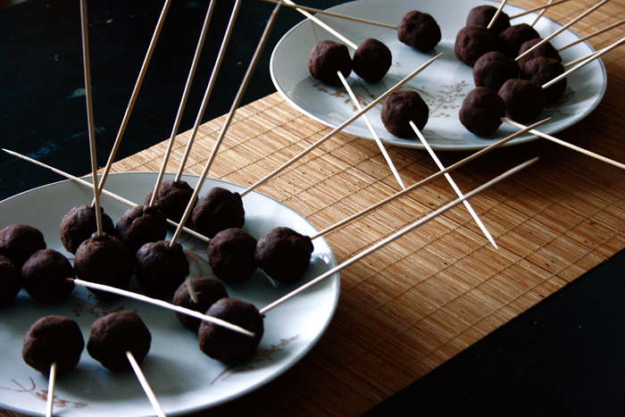 Cake Pops sind ja nun wirklich schon lange ein Trend bei den meisten Foodblogs. Ich hab mich bisher herausgehalten, da ich lieber “richtige” Kuchen backe und auch nicht so geduldig bin, was viele Arbeitsschritte und so angeht… Nachdem ich letztens den Maulwurfkuchen gebacken hatte, ist bei mir aber eine Menge Schokoladenkuchen übrig geblieben (weil ich aus Versehen zu viel vom Deckel abgeschnitten hatte). Daraus habe ich dann die ersten Cake Pops meines Lebens gemacht und sie einer Freundin mitgebracht. Die fand sie so toll, dass ich sie für ihre Abschiedsparty nochmal backen musste – und jetzt will ich euch das Rezept zeigen!