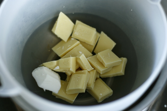 Dunkle Schokolade mit der Hälfte des Kokosfettes im Wasserbad schmelzen. Cranberries in Pralinenförmchen füllen und die Hälfte der Förmchen mit der dunklen Schokolade ausgießen. Dann die weiße Schokolade mit dem restlichen Kokosfett im Wasserbad schmelzen und die restlichen Förmchen damit ausgießen.