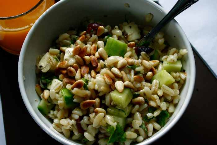 Auch mit gerösteten Pinienkernen schmeckt der Salat sehr lecker: