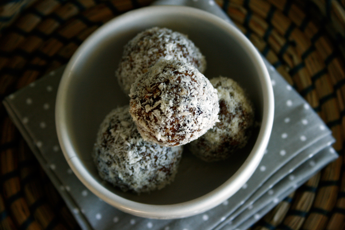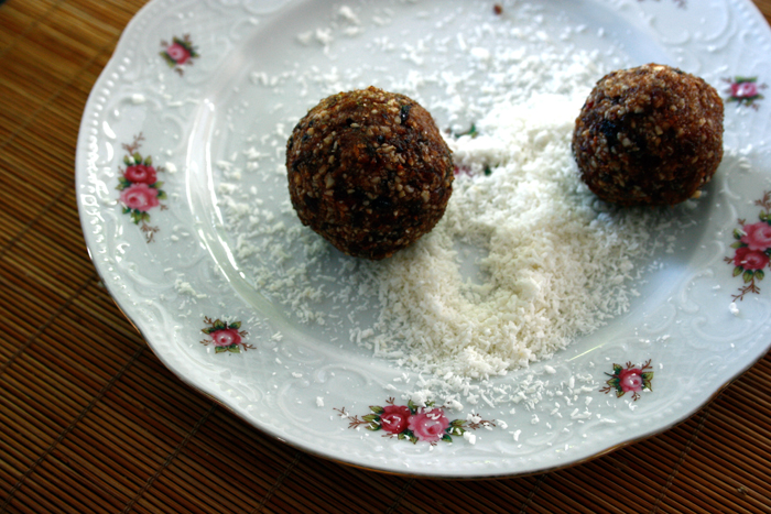 Daraus Bällchen formen und diese in den Kokosraspeln wälzen.