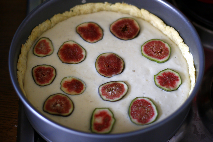 Die Masse auf den Boden gießen und Feigen darauf legen.