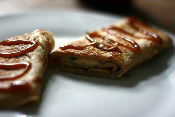 Bei mir gab es heute mit Käse gefüllte Palatschinken, dazu Curry-Ketchup.