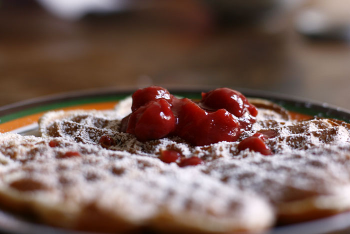 Die Waffeln am besten auf einem Gitterrost abkühlen lassen, dann mit Staubzucker bestreuen und nach Wunsch noch Marmelade dazugeben.