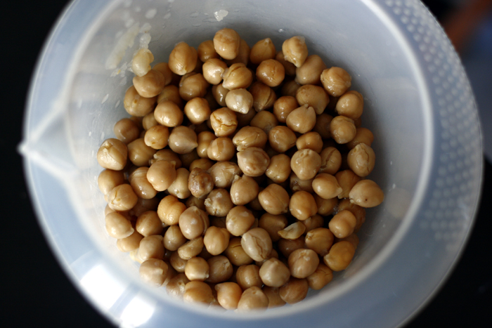 Kichererbsen in einem Sieb gut abspülen, bis sich kein Schaum mehr bildet.