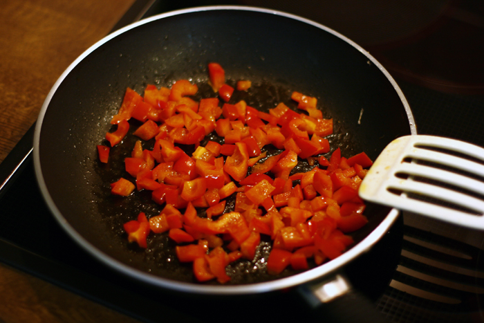 Zusammen mit der Paprika unter die Kichererbsen rühren.