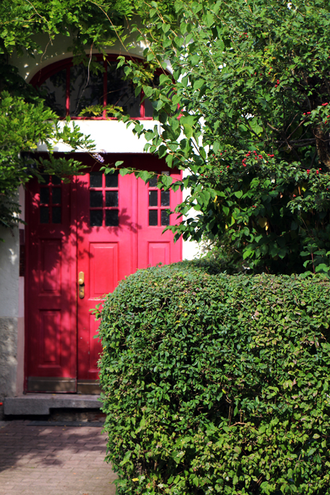 Hinter dieser roten Tür versteckt sich eines unserer Lieblingshäuser. Der Hund kennt sich inzwischen in Thalkirchen auch schon gut aus 😉