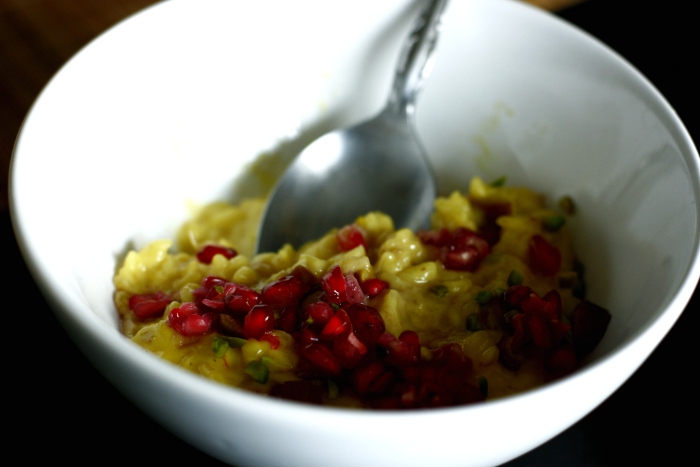 Dieses Rezept ist mir in meinem neuen Kochbuch “einfach vegan” sofort aufgefallen. Nicht nur wegen dem phantastischen Kontrast zwischen saftig-gelbem Milchreis und den feuerroten Granatapfel-Kernen, sondern auch, weil es einfach absolut köstlich klingt. Das hat sich auch bewahrheitet – es schmeckt umwerfend!