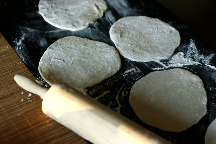 Minuten gehen lassen. Bitte passt auf, dass genug Mehl unter den Pitas
