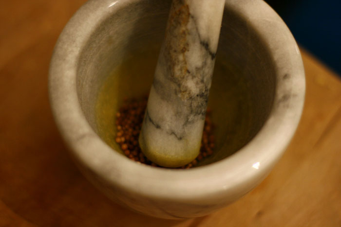 Zum Schluss Koriandersamen und gehackten Koriander unter die Bohnen rühren. Wenn man sie noch findet, am besten die Zimtstange wieder raussuchen, denn die ist nicht essbar 😉