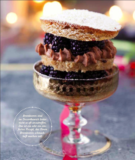 Wem jetzt nicht das Wasser im Mund zusammenläuft, der braucht wohl visuelle Unterstützung! Die Photos der Fotografin Alexandra Schubert sind absolut authentisch und begeistern auf jeder Seite. So wie bei diesem Brombeer-Trifle: