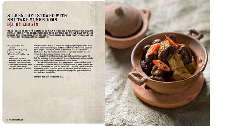 Beispiele für vegetarische Rezepte: Lemongrass crusted Tofu (Táu Hu Xa Ot), Haricot Bean Pudding (Ché Dâu Ván), Flourless Cassava Cake (Bánh Khoai Mì).