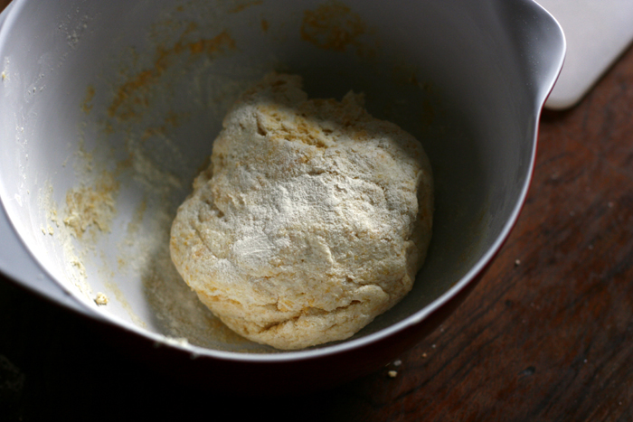 Alle Zutaten in eine Schüssel geben, vermischen und zu einem Teig verkneten.