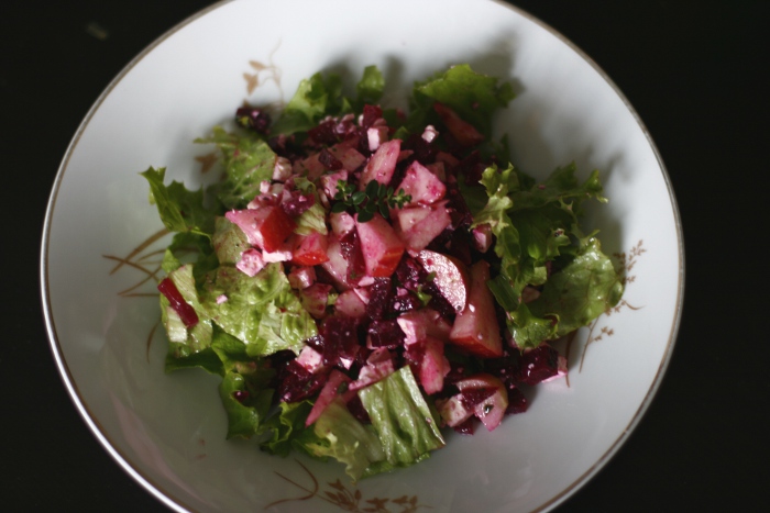 Ich konnte mich dunkel an das erste Mal erinnern, dass ich Rote Bete gegessen habe – als Salat mit Apfel. War gar nicht so übel, deshalb dachte ich, das könnte man doch mal versuchen. Volltreffer!