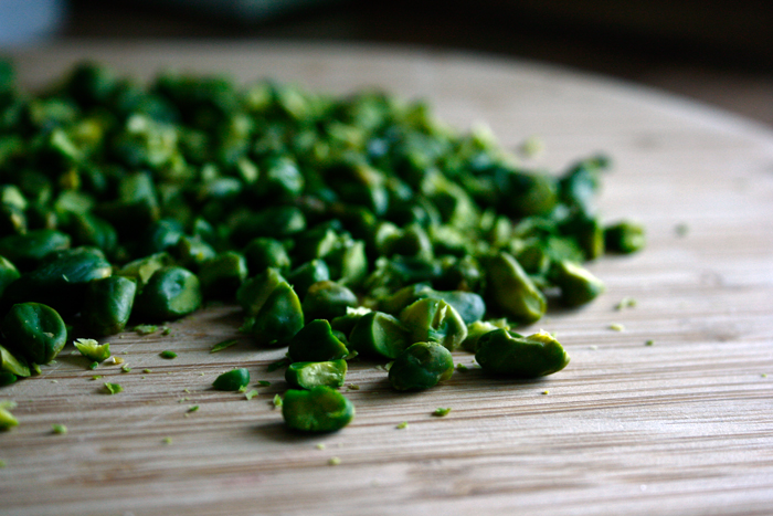 Ofen auf 180°C vorheizen. Pistazien grob hacken.