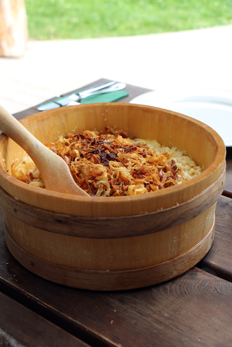 Morgens gibt es ein klassisches Frühstücksbuffet, aber wenn ihr lieb fragt, macht euch Wolfgang vielleicht auch einen Frühstücksriebel! Wir durften sogar zugucken und vom Experten lernen, wie man einen echten Riebel herstellt und worauf es ankommt.