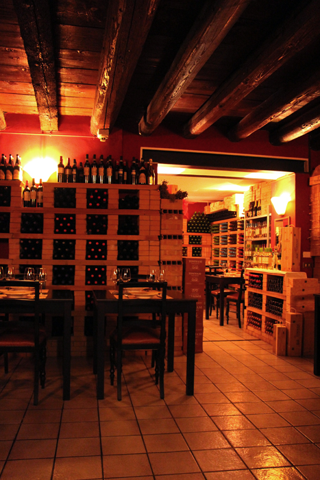 Zu jedem Gang wird ein passender Wein serviert, der Kellner mit jahrelanger Erfahrung berät bei der Auswahl. Ich hatte außerdem ein köstliches Risotto mit Amarone und ein Vanilleeis mit Beeren in einer Schale aus Mandelkrokant. Auch das Abendessen im Restaurant war köstlich, zum Beispiel wurde als Nachtisch zum süßen Recioto Wein ein traditionelles Gebäck serviert – eine Art Crumble mit Nüssen. Zum Restaurant gehört ein extra Raum im Keller, der für größere Runden gemietet werden kann – das Ambiente ist atemberaubend!
