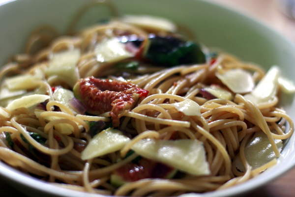 Vollkornspagetthi nach Anweisung kochen. In der Zwischenzeit Feigen vorsichtig waschen, dann den Stiel abschneiden und vierteln. Wenn die Spaghetti fast fertig sind, Butter in einer Pfanne erhitzen, Feigen kurz anbraten, mit Salz und Pfeffer würzen. Spaghetti grob abtropfen lassen und mit einem Rest Kochwasser in die Pfanne geben, nochmals mit Salz und Pfeffer abschmecken und auf einem Teller anrichten. Parmesan / Grana Padano darüber hobeln.
