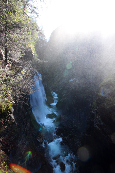 Zuletzt noch zum Punkt Wanderhotel – den Namen hat das Hotel nicht umsonst, denn man bekommt eine umfassende Beratung wo man wandern gehen kann und kann sich Wanderkarten ausleihen. Hausherr Stefan bietet außerdem an einigen Tagen selbst geführte Wanderungen an. Wir haben uns enschlossen, es nach drei Tagen Wandermarathon im Hochpustertal etwas ruhiger angehen zu lassen und haben eine leichte Wanderung mit etwa neun Kilometern zu den Rheinbachwasserfällen unternommen. Der Weg durchs Dorf am Fluss entlang ist bereits sehr hübsch.