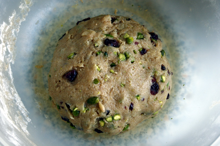 zu einem glatten Teig verarbeiten. Mandeln, Pistazien und