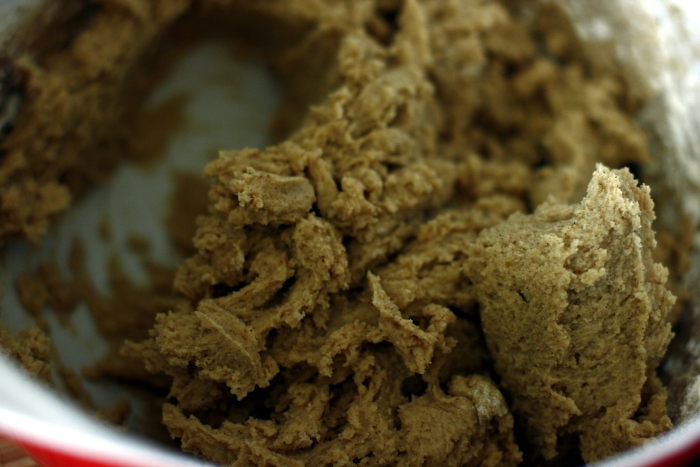 Die Butter mit dem restlichen Zucker und dem Salz mit den Quirlen des Handrührgeräts kräftig verrühren. Das Ei und den Rum/Wasser dazugeben und alles cremig schlagen.Dann die Mehlmischung auf einmal dazugeben und rasch unter die cremige Masse arbeiten.