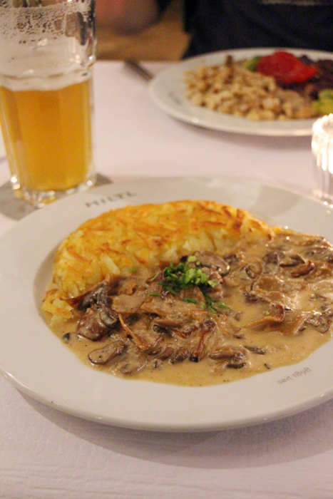 Hiltl ist das älteste vegetarische Restaurant der Welt, da es bereits seit 1898 besteht. Klar, dass ich dort essen gehen musste! Mittlerweile gibt es gleich mehrere Standorte in Zürich, ich habe mich jedoch für das alte Haus in der Sihlstraße entschieden. Hier git es ein riesiges vegetarisches bzw. größtenteils sogar veganes Buffet, bei dem man pro 100 g bezahlt. Ich habe allerdings à la carte gegessen, weil ich den Klassiker Rösti mit Zürcher Seitan-Geschnetzeltem ausprobieren wollte. Es war absolut köstlich, ebenso die hausgemachten Eistees.